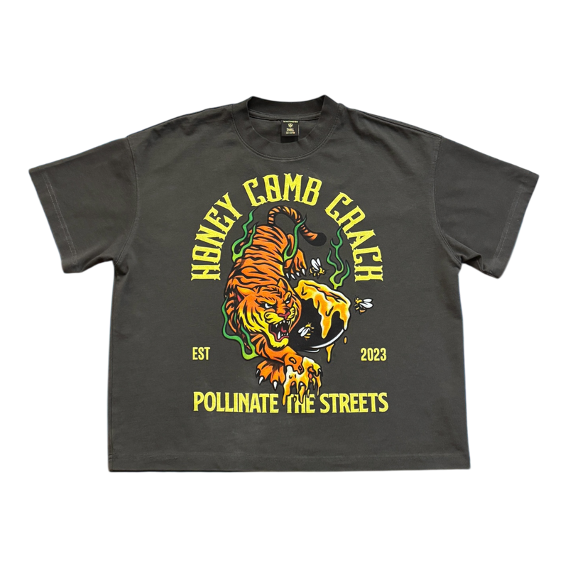 Turn heads, spark conversation, and rep the hive with our official Honey Comb Crack® Hive Hustler™ Tee.