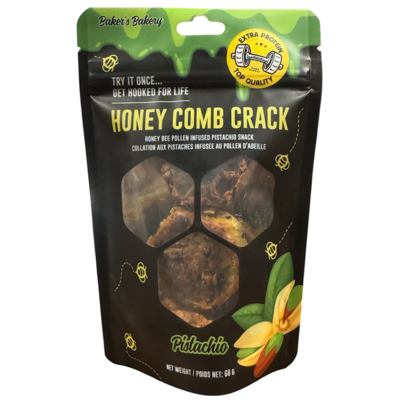 Nutty, sweet, and buzzing with benefits — our Pistachio Honey Comb Crack + Plain Whey fuses the classic crack bar charm with an extra boost of clean, grass-fed protein. We’ve layered roasted pistachios, creamy coconut, rich dark chocolate, and wild bee pollen — now fortified with unflavoured grass-fed whey protein — for a snack that’s indulgent and functional.